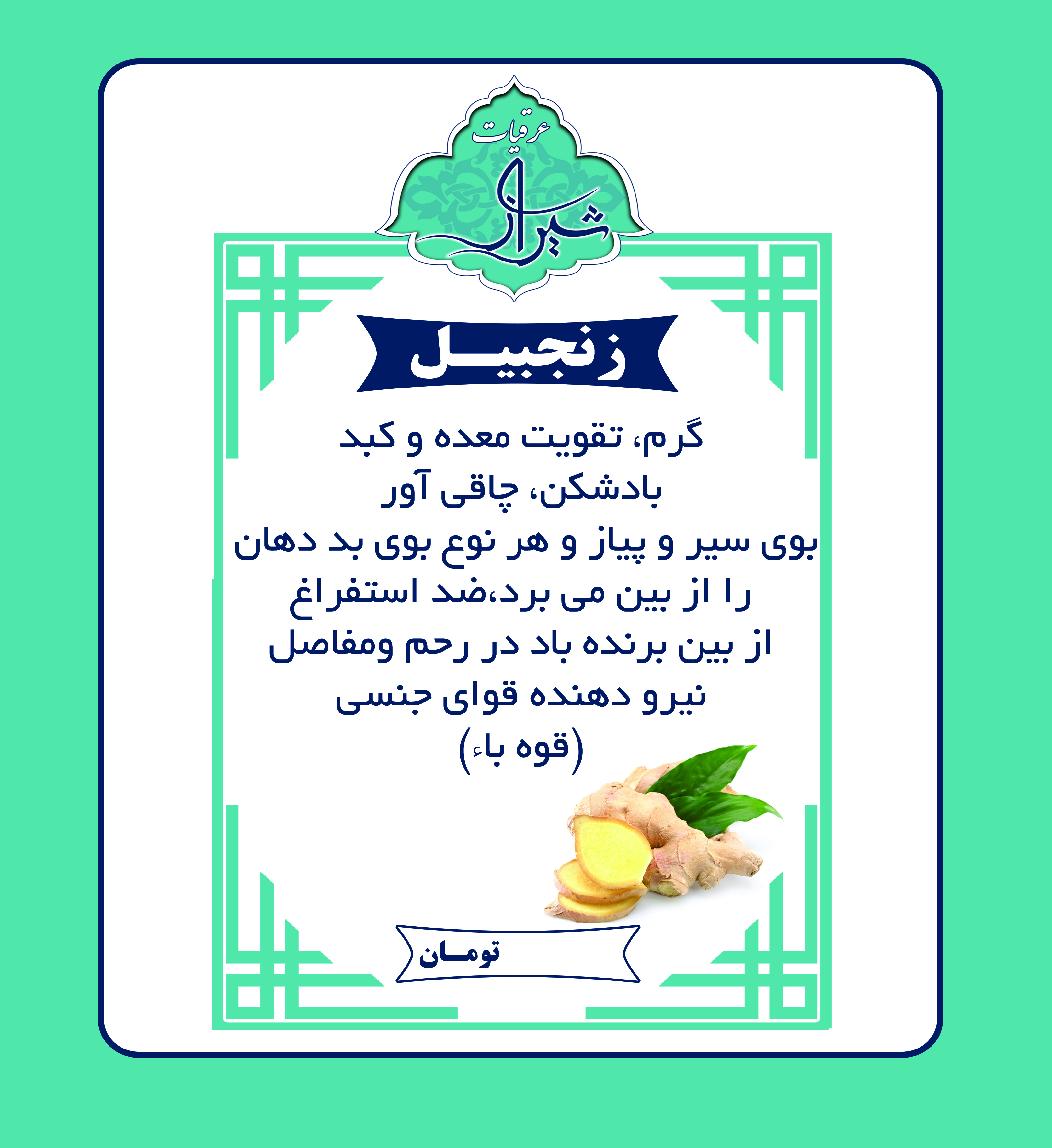 عرق زنجبیل دارای طیعت گرم است . خواص : تقویت معده و کبد . باد شکن و چاق کننده . از بین برنده بوی بد دهان . نیرو دهنده قوای جنسی .